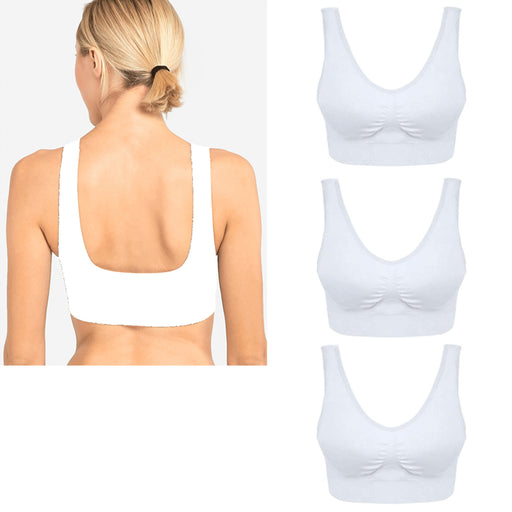 ATB9 reviews3 Pc Sports Bra Wireless Racerback Removable Light Pad Seamless Plain Gym White New !! Get active with our seamless sports bra. The soft, seamless ...