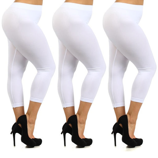ATB13 reviews3 Pc Women Plus One Size Capri Leggings Stretch Tights Basic Yoga Seamless White The world of leggings just got better with these seamless Capri L...