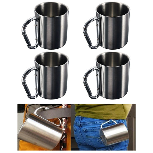ATB8 reviews4 Pc Portable Cup 8oz Stainless Steel Camping Carabiner Mug Thermal Hook Handle A Great Gift !! The durable stainless steel carabiner camping mug ...