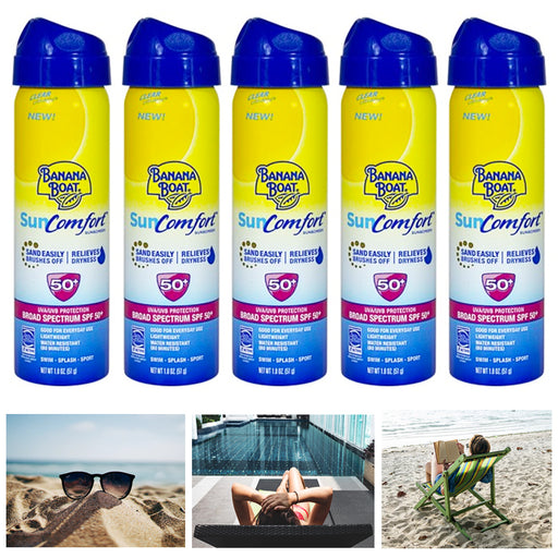 ATB8 reviews5X Banana Boat SunComfort SPF 50+ 1.8oz Sun Care Swim Splash Sport UV Protection !! Set of 5 Broad Spectrum SPF 50+ sunscreen spray that gives you...
