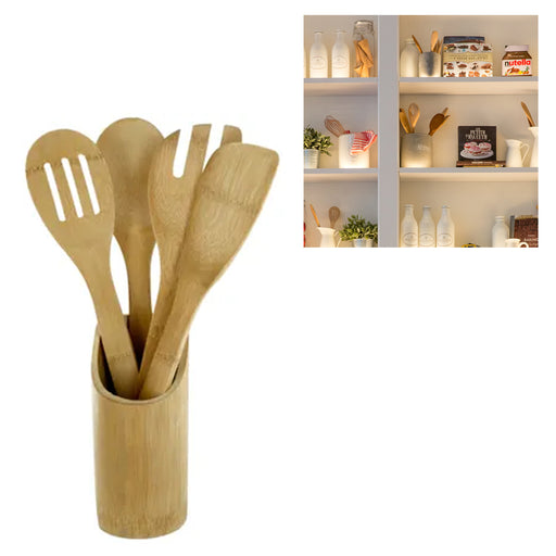 ATB16 reviews5 Pack Bamboo Wooden Kitchen Tools Cooking Utensil Spatula Spoon Fork Stand Chef Bamboo Utensil Set with Container. Great for a variety of cooki...