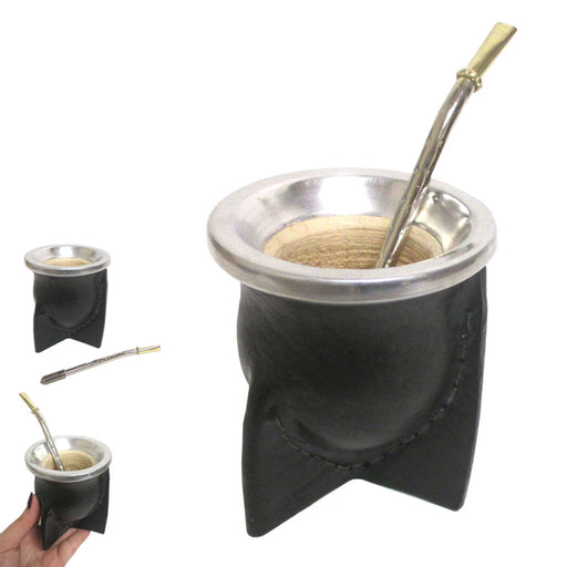 ATB7 reviewsLeather Argentina Mate Gourd Kit Yerba Tea With Bombilla Straw Set Black 8440 !! This luxury edition of the traditional mate gourd in genuine bl...