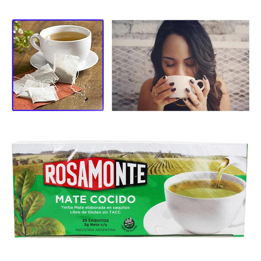 ATB16 reviews50 CT DE ROSAMONTE COCIDO TEA BAGS For hot or iced herb tea. Mate is a tea-like beverage most commonly consumed in Argentina, Uruguay, Paraguay a...