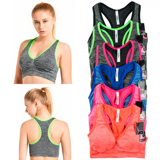 ATB11 reviewsWomens Seamless Sports Bra Racerback Padded Yoga Stretch Soft Top One Size *Available colors: Pink, Orange, Blue, Grey/Blue, Grey/Green, Grey/Pink...