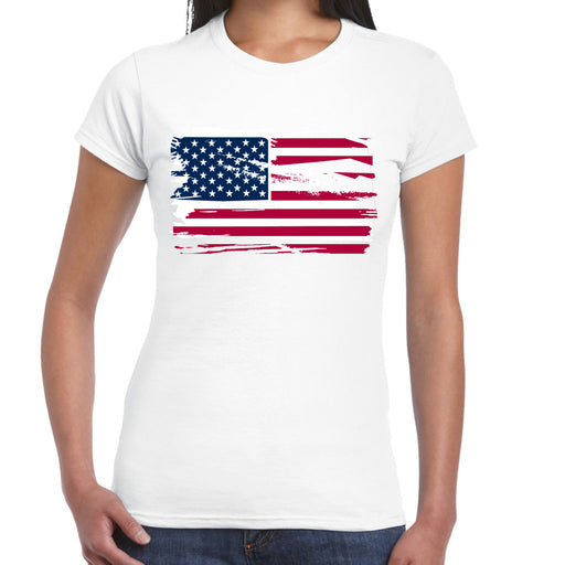 USA American Flag Women T Shirt 4th July Ladies Top Patriotic Vintage Tee 2XL