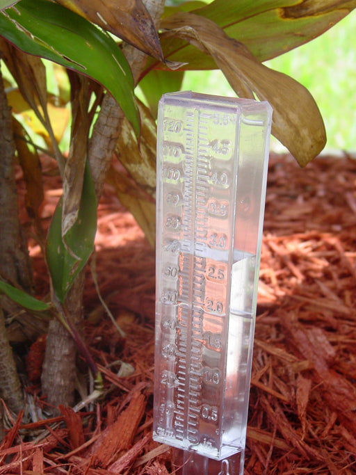 This clear plastic rain gauge is a 5" capacity model, collector opening. Tell at a glance how much rain fell.In warm weather, your lawn needs water...