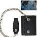 1 Black Genuine Leather Men Wallet Trifold Metal Chain Biker Trucker Motorcycle