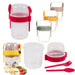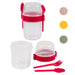 Perfect for taking yogurt and granola or other toppings on the go, this 20-ounce Yogurt Cup features a durable transparent plastic cup with a screw-on lid, separate dome top compartment and a matching plastic spoon and fork.