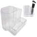 Sleek and compact, this clear acrylic makeup organizer fits perfectly on a shelf or dresser top.