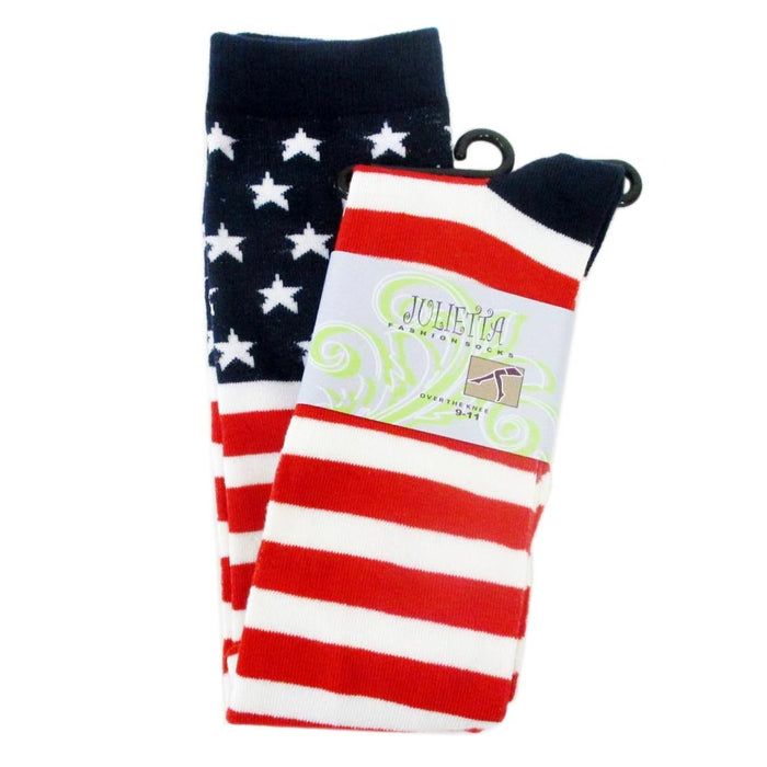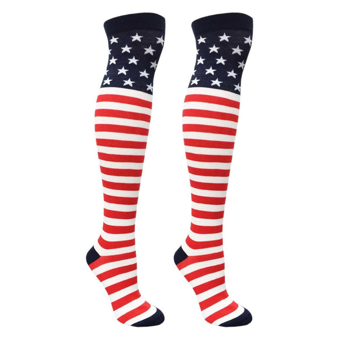 American Flag Knee High Socks USA Freedom Stars Stripes Design Patriotic Woman