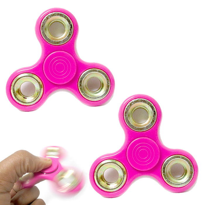 Set of 2 Pink Tri Fidget Hand Spinner Finger Toy EDC Focus Desk ADHD Autism Kids Adults !