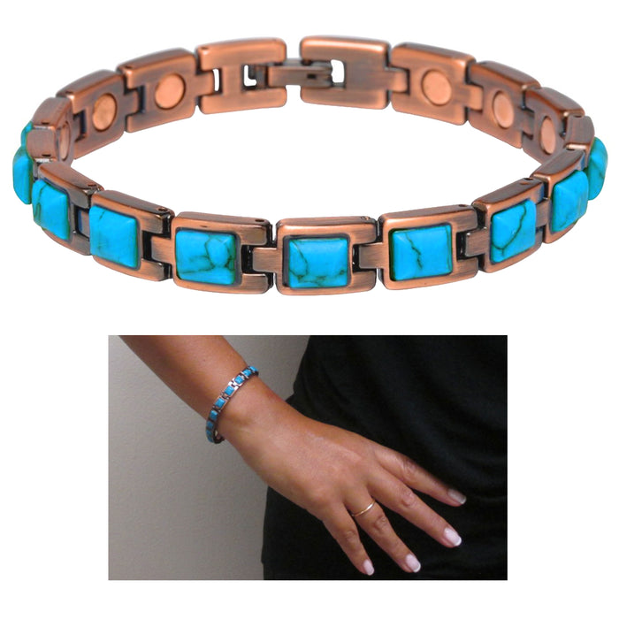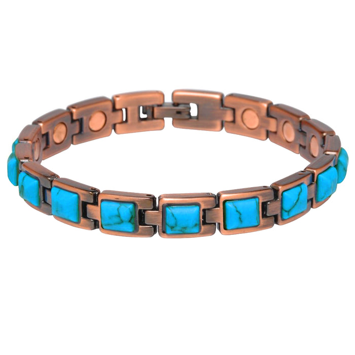 1 Bracelet Turquoise Natural Gem Solid Copper Magnetic Link Healing Energy Gift