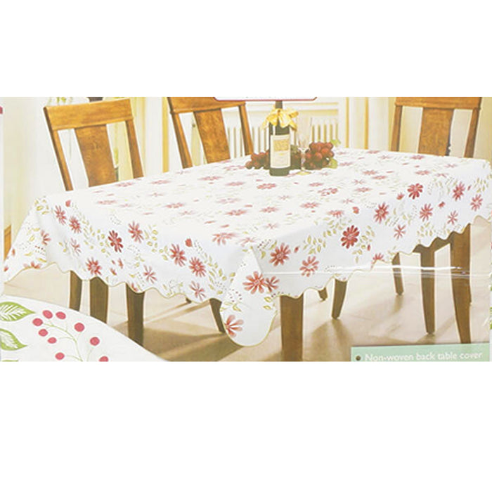 1 White Floral Rectangle Tablecloth 54"X72" Design Table Cover Party Wipe Clean