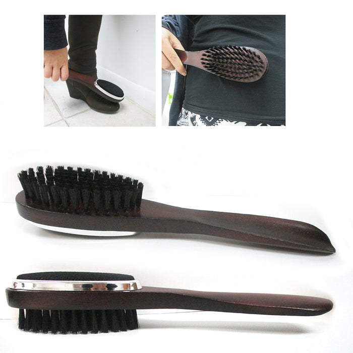1 Wood Shoehorn Clothes Lint Brush Garment Care Sturdy Slip Men Women Shoe Horn