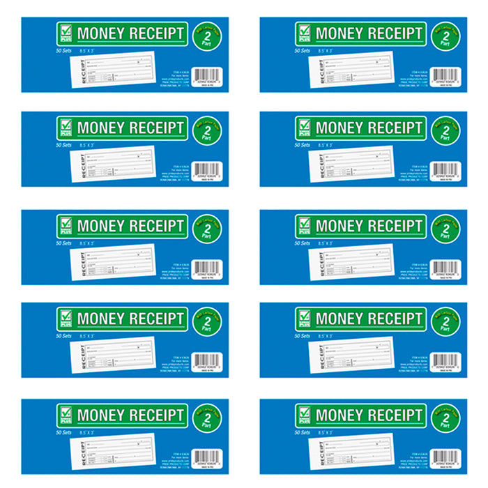 10 Cash Money Rent Receipt Record Book 2 Part 50 Sets Duplicate Copy Carbon Brand New !