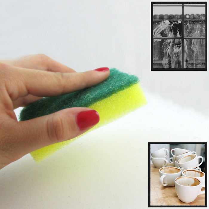 Use these amazing scrubbing sponges for many household uses such as: pots & pans, dishes, tiles, showers & tubs, utensils, sinks, mirrors & windows, in between many more.