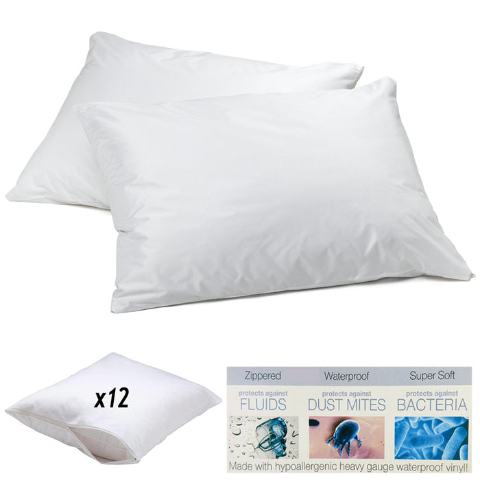 12 Deluxe Vinyl Waterproof Hypoallergenic Bed Bug Zipper Pillow Protector Covers