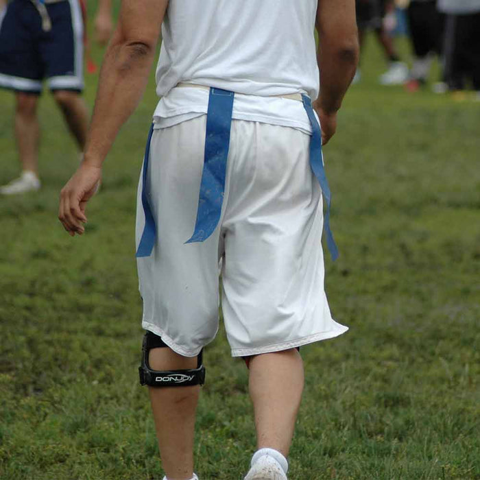 This flag football belt Red set is perfect for a pick-up game of flag football in the backyard, at the beach or an official game on the turf or even used for those 5K Zombie Run Marathons.