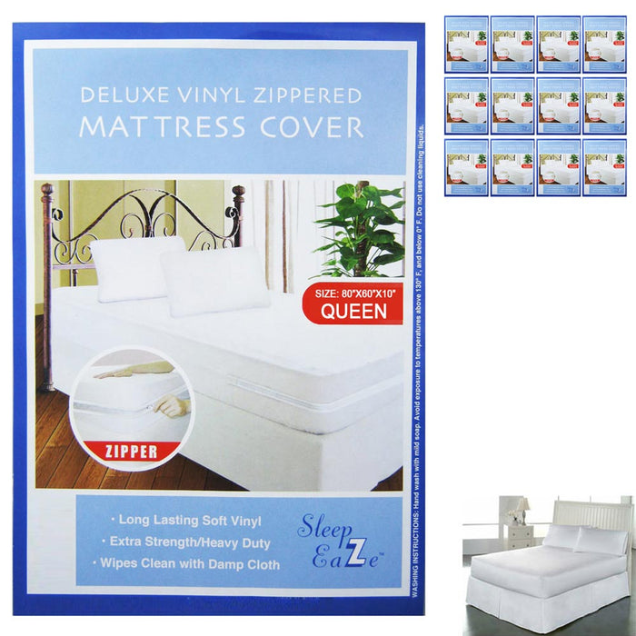 Lot of 12 Queen Size Mattress Covers Vinyl Zipper Waterproof Anti Bug Dust Protector !
