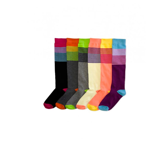 12 Pair Ladies Knee High Socks Assorted Stripes Dance Womens Girls Uniform 9-11