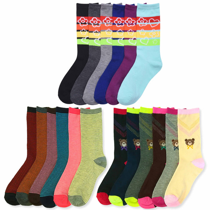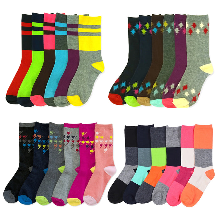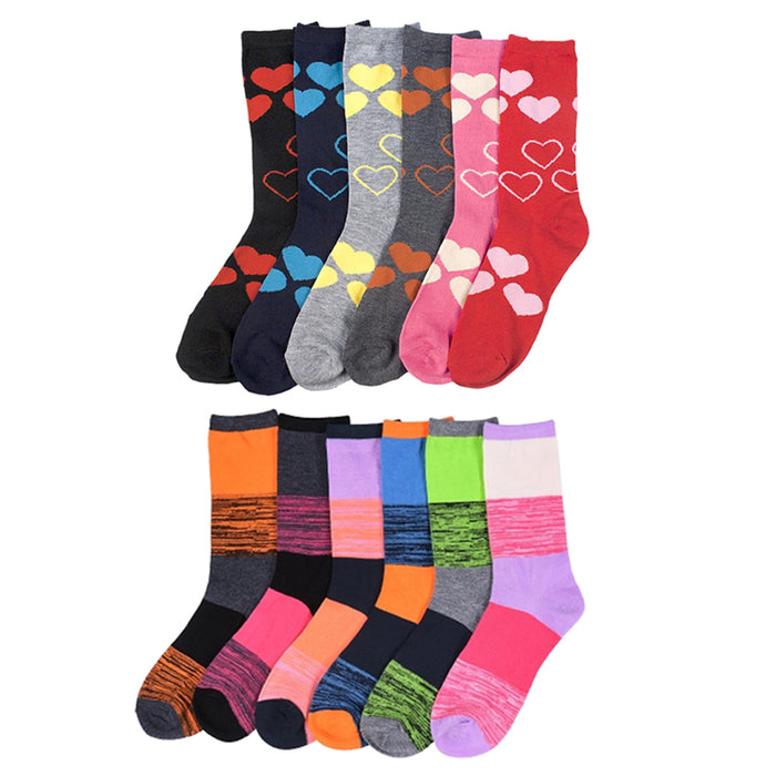 12 Pairs Womens Fashion Crew Socks Pattern Stripes Hearts Casual 9-11 Unisex New