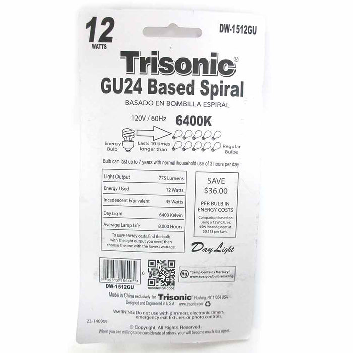 This day light energy saving 12 watts GU24 base CFL light bulb is a 45 watts replacement.