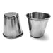 Stainless steel sauce cups with rolled edge for extra strength. Height: 1 7/6 inches, Diameter (mouth): 1.5 inches, Diameter (base): 1 inch.