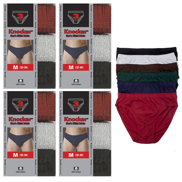 12 PCS Mens Underwear 100% Cotton Bikinis Briefs Size Medium 32-34 Lined Knocker