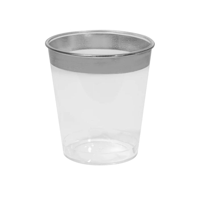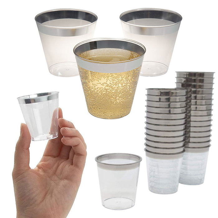 120 Pk 1oz Plastic Shot Glasses Mini Cups Silver Rim Clear Disposable Wedding Party