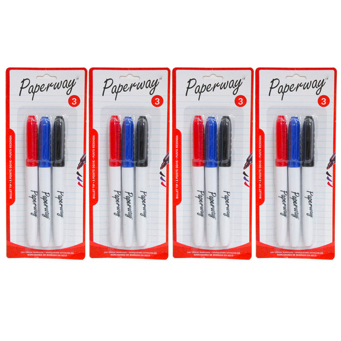12PC Low Odor White Board Markers Dry Erase Bullet Tip Black Blue Red Color Pens