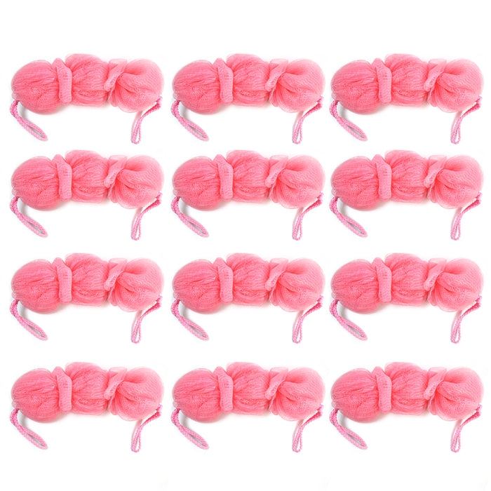 This beautiful lot of 12 Pink exfoliating mesh bath sponges features a long shape that is easy to use with nylon loop handles to extend your reach, it is perfect for daily cleansing in the shower or bath.