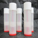 Set of 15 Clear/Red lip balm tubes with round cylinder and snap on smooth finish with White caps included.