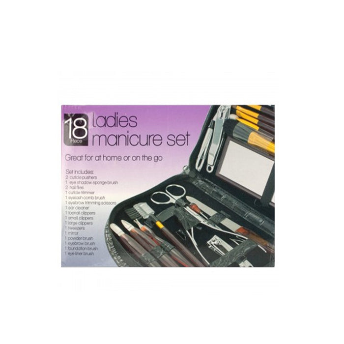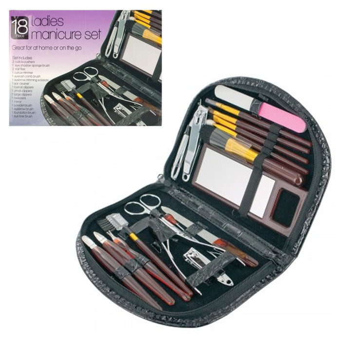 Keep your nails and beauty routine on point anywhere you go with this 18-Piece Women’s Manicure & Pedicure Grooming Set!