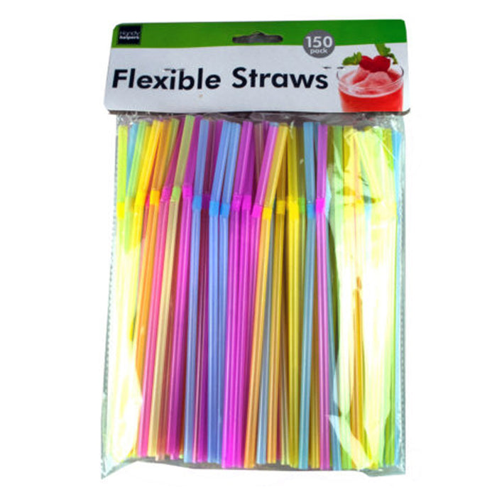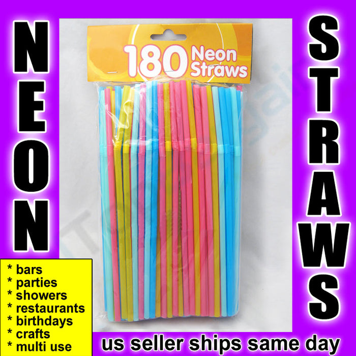 150x Neon Drinking Straws Flexible Plastic Party Home Bar Drink Cocktail Cup Fun
