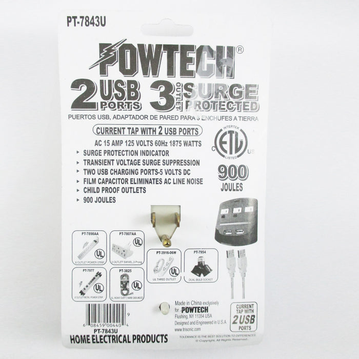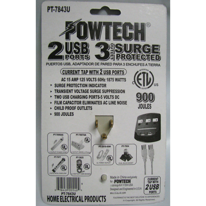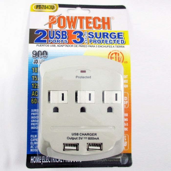 Surge Protected and Child Proof Outlets, 2 USB Charging Ports, Surge Protection and Ground Protection Indicator Brand: Powtech