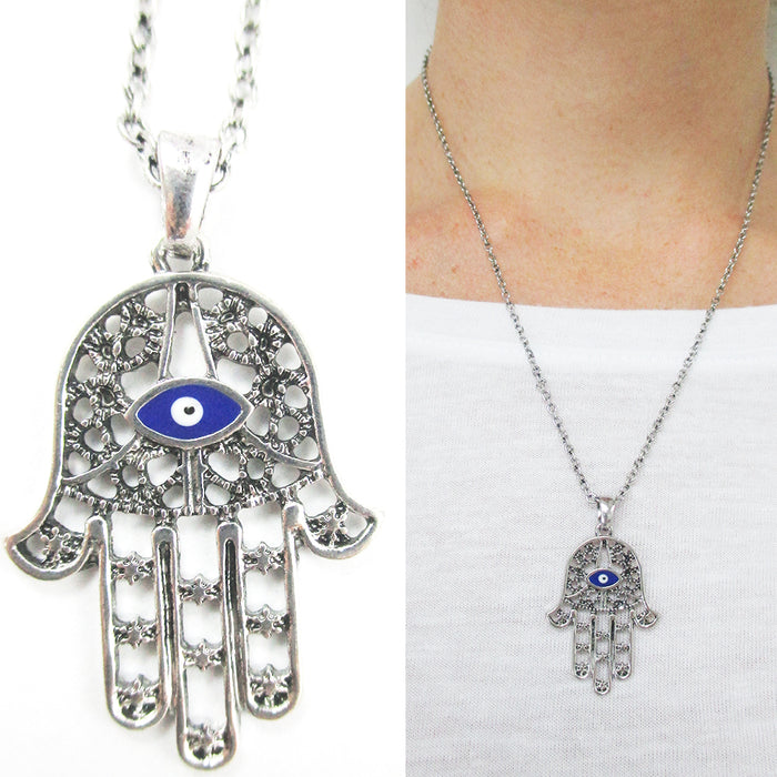2 Pc Hamsa Hand Necklace Lucky Evil Eye Pendant Chain Necklace Kabbalah Fatima