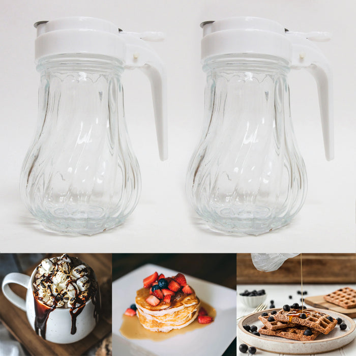 2 Pack Honey Syrup Dispenser Glass Jar 7.6 oz Retro Style Container W/ Handle USA Stock !