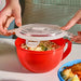 Made of durable plastic, microwave soup mug comes with a clear lid, ideal for microwaving soups, stews and even beverages.