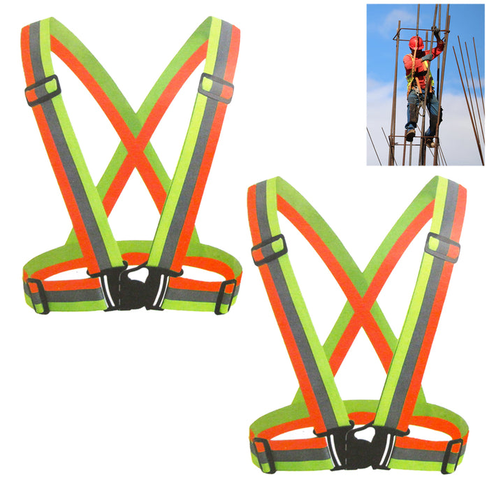2 Reflective Vests Lightweight Adjustable Elastic Safety High Visibility Outdoor !