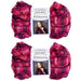 Great for making scarves and more, this Metallic Pink & Red Rosebud Ribbons Yarn features pink, red and purple striped, netted yarn with sparkly red accents.