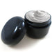 Lot of 24 empty black double-wall plastic jars with unlined domed screw on lids, which are included.