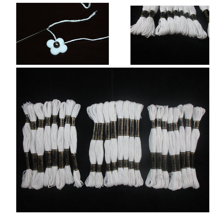 24 White Stranded Stitch 100% Cotton Embroidery Thread Floss Sewing Skeins Craft