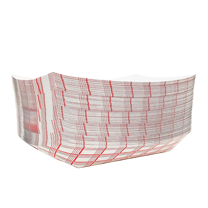25 Ct Paper Food Tray Disposable Boat Plate Red Checkered Basket Containers