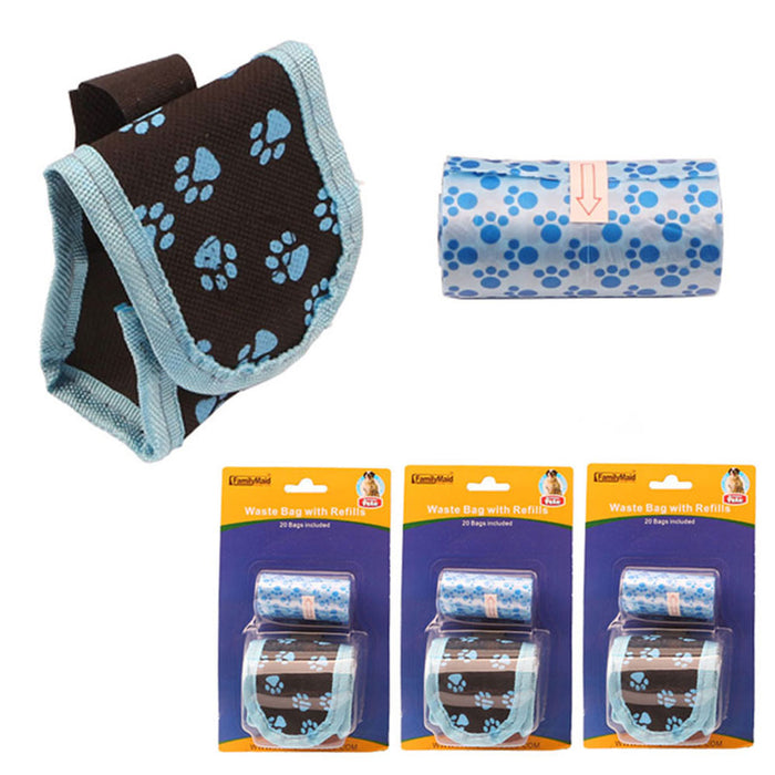 This listing is for 3 Blue packs ( 3 Dog paws dispensers and 3 waste rolls with 20 bags each roll).