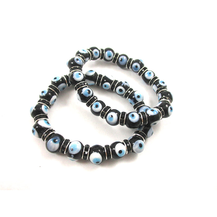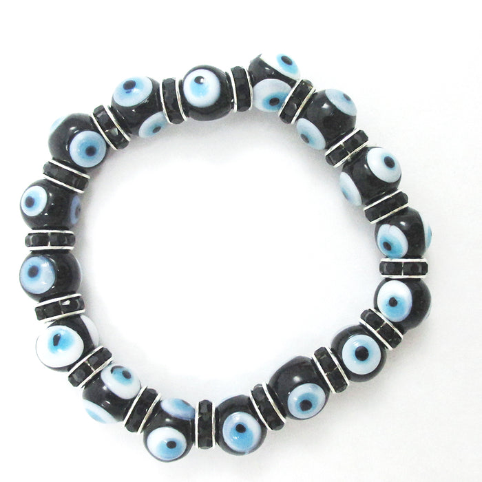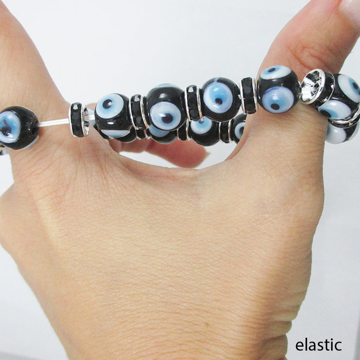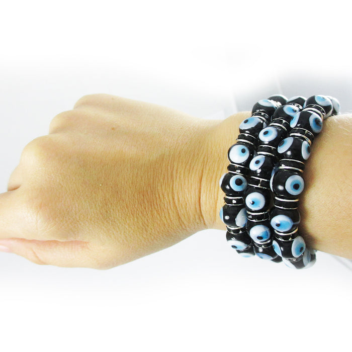3 New Evil Eye Lampwork Glass Beads Stretch Bracelet Hamsa Greek Turkish Nazar Good Luck Kabbalah Protection Jewelry !