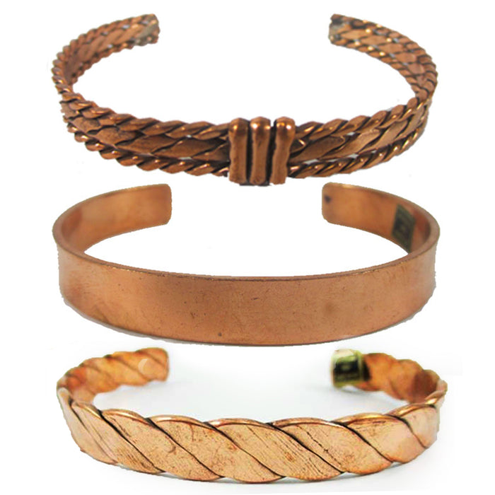 3 New Solid Copper Cuff Bracelet Arthritis Pain Therapy Healing Aches