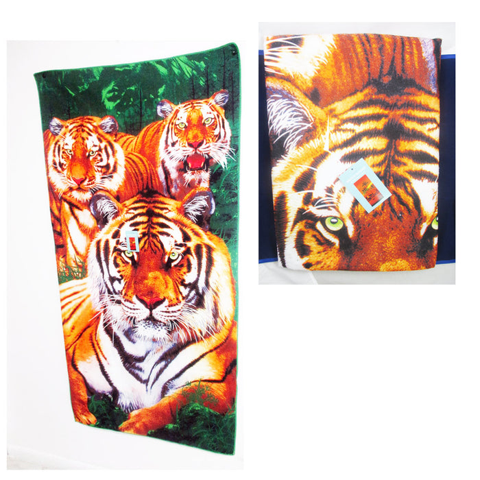This light weight beach towel measures: 29.5" W X 59"L. Soft and comfortable to the touch, made of 100% soft microfiber material for maximum comfort, absorbency, and durability.