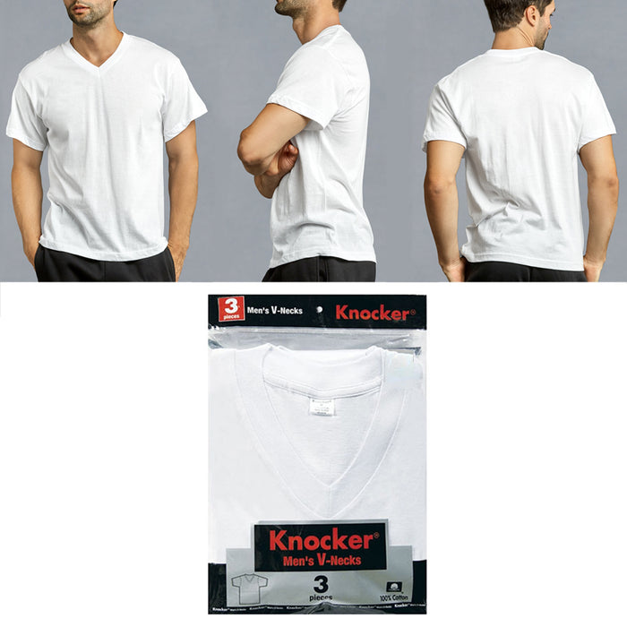 3 Mens White V-Neck T-Shirt 100% Cotton Undershirt Comfort Soft Tee Tagless 2XL