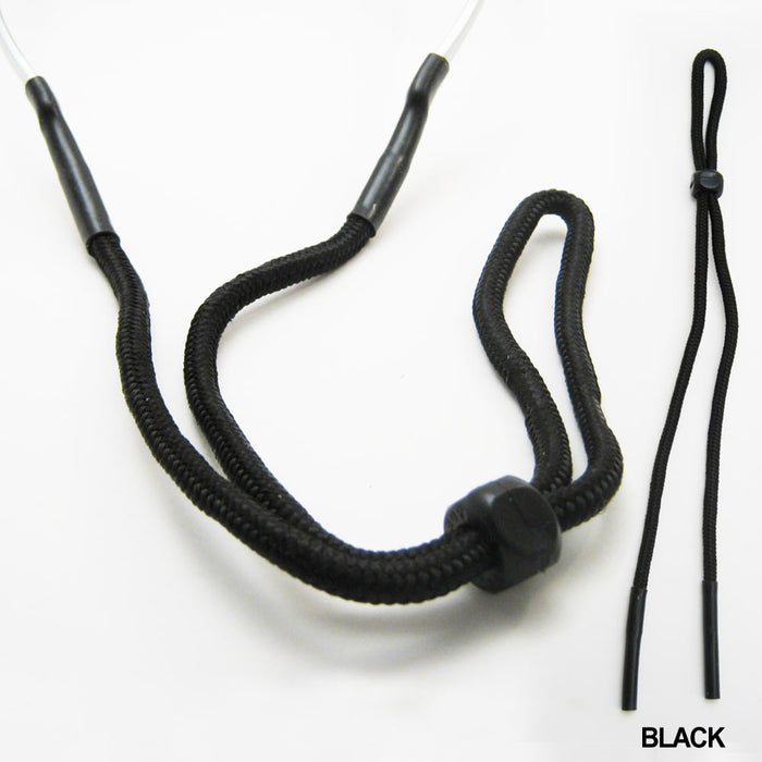 The black plastic slider is adjustable to keep eye wear snug while doing sports.