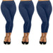 3 PC Basic Blue Women Seamless Capri Leggings Plus One Size Stretch Fit Yoga New !!